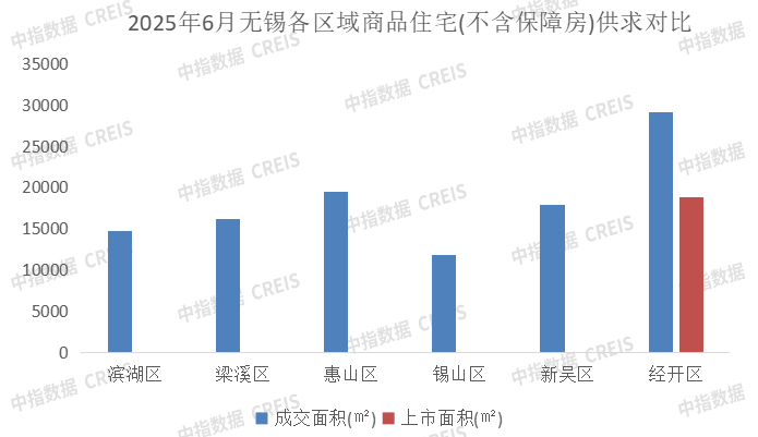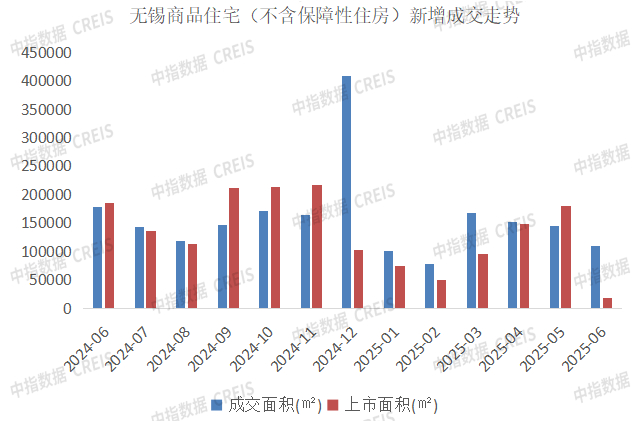 2025年6月,无锡市商品住宅(不含保障性住房)新增面积为1.89万㎡,成交面积为10.95万㎡,成交金额约26.35亿元。