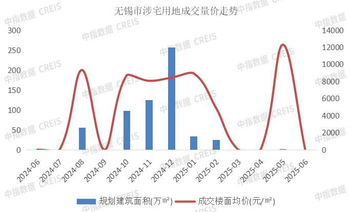 2025年1-6月,无锡市(含江阴、宜兴)共成交各类用地109宗,规划建面共计638.58万㎡。其中,成交住宅用地9宗,共计60.08万㎡;商办用地10宗,共计34.10万㎡。