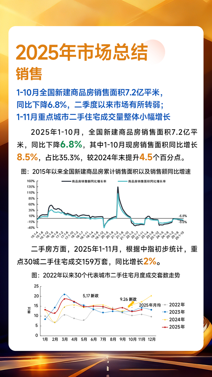 2025年,全国房地产市场整体延续调整态势,二季度以来新房销售边际转弱,二手房市场持续“以价换量”,市场整体仍处于“止跌回稳”过程中。