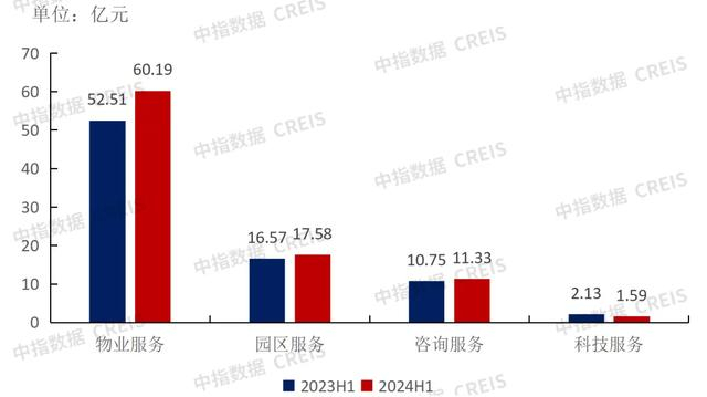 绿城服务的营业收入按结构划分可分为物业服务、园区服务、咨询服务以及科技服务四大部分。