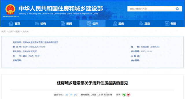 2025年12月31日,住房和城乡建设部发布《关于提升住房品质的意见》(以下简称《意见》),将提升物业服务水平作为建设“好房子”、打造“好小区”的关键环节。