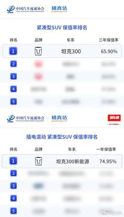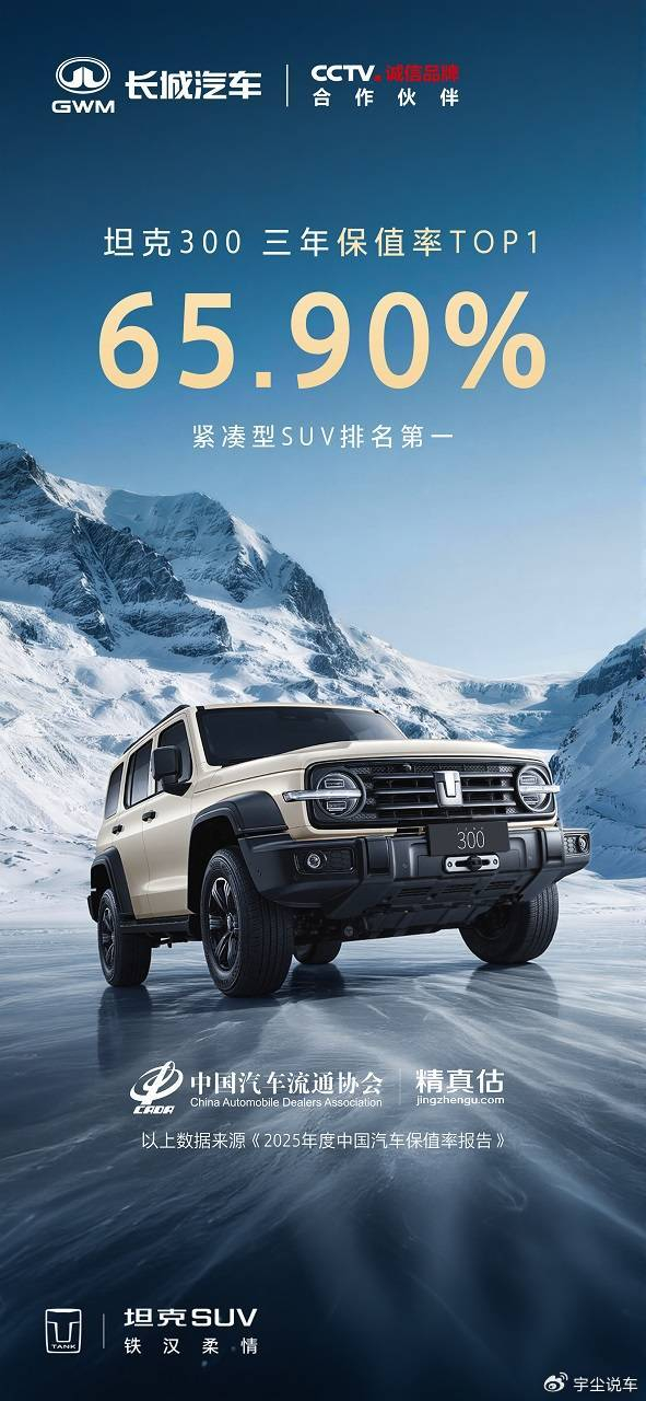 2026年1月,中国汽车流通协会正式发布了《2025年度中国汽车保值率报告》。在这份报告中,坦克300荣获燃油、插电混动紧凑型SUV双榜第一;同时坦克品牌插混车型集体霸榜,在与主流城市SUV、豪华品牌的同台竞技中跻身前列,展现了品牌坚持长期主义的市场收获,也是坦克品牌品类创新对同质化内卷的胜利。