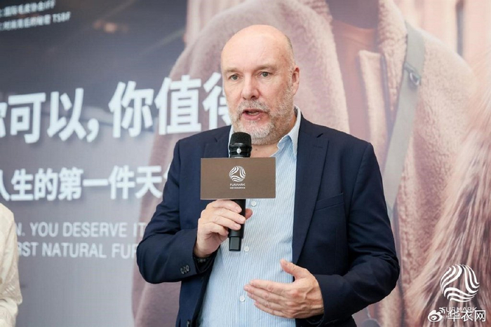 不远万里从伦敦赶赴现场的Mark Oaten在开场致辞中直白表达出能够在上海重要地标举办活动,并见到众多中国年轻有活力的KOL、KOC共聚的喜悦:“不管是今天的场地选择,KOL们精力充沛的状态,还是现场的欢快轻松氛围,都让我感到非常惊喜。最近几年,国际毛皮协会愈发注重在年轻人中推广天然毛皮的可持续性。我们此前合作的大多是以国际大牌、欧洲设计师为主,这次来到中国,我看到中国设计的水平、特别是针对年轻人的设计非常时尚,让我愈加相信,天然毛皮可以走向新的领域、在新的时代获得新生,而这完全有赖包括在座各位在内的有影响力的KOL的共同努力。当然,我也想再次重申:天然毛皮可持续认证标志Furmark®代表的是品质、信心、保障和未来。”