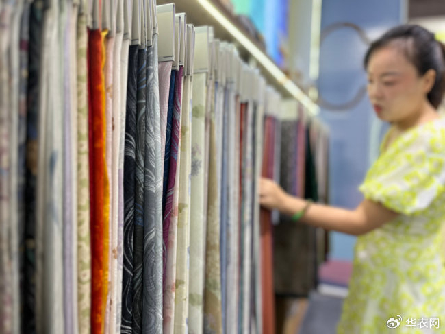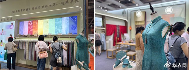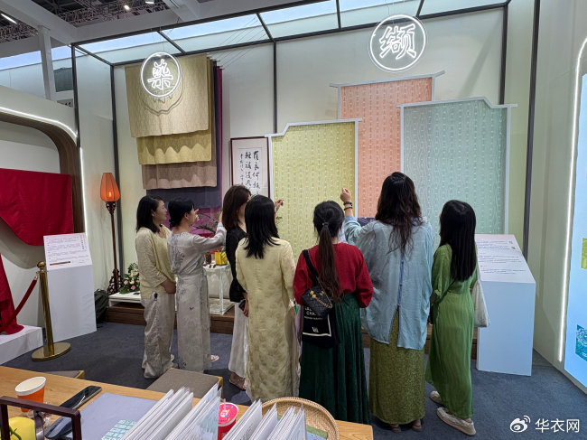 “这两个系列产品都是首次与大家见面。目前不管是对传统文化工艺比较关注、有一定基础的观众,还是单纯被颜值吸引过来的海内外观众,都表示非常喜欢,尤其是‘缬罗系列’,已经有不少观众提出了订货需求。”展会现场,苏州市锦达丝绸有限公司副总经理杭航告诉我们。据她介绍,“缬罗系列”是由她和同门专门研究中国传统防染工艺的博士师兄耗时三年磨合完成。双方基于对中国传统工艺相同的热爱,一点点攻克种种难关,最终让技术达到成熟稳定可以上市的程度。而做出的“缬罗系列”成品,也凭借张扬有生命力的风格,与110门幅的宽度,打破了绞缬在现代应用场景的局限性,适用范围更广,辐射人群更年轻化。