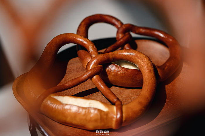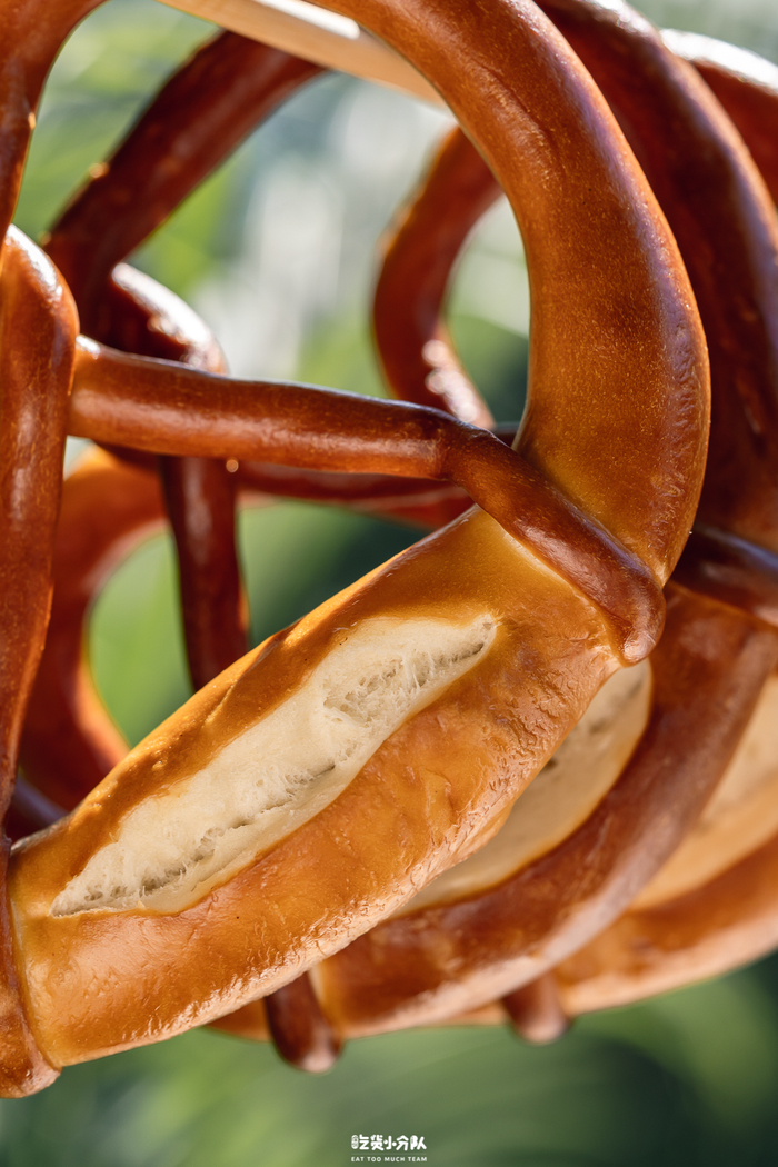 其实就是碱水结,是来自德国的一种小吃。深咖啡色的外表,有淡淡的光泽感,有些部分上色不够均匀。咀嚼时有清新麦香,但口感偏硬。配料表上有注明使用了人造奶油,包体有油感。