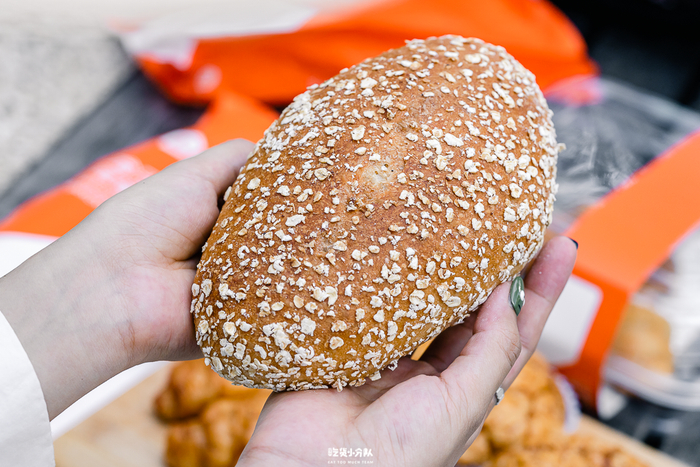 无油无糖的全麦面包,表面有很多燕麦,吃起来感觉面包内里还是偏湿润的,还有细碎的麸皮,是咸口面包,只卖一天。全麦面包是指用未去掉外面麸皮和胚芽的全麦面粉制作的面包。盒马烘焙这款面包配料表上的全麦粉排第三位,但作为一款普通面包而言,味道还算不错。