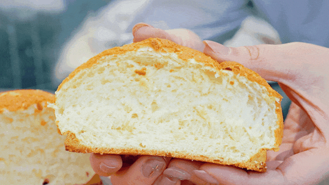 每款bun面包都是对半分好端上来的,刚烤好的圆圆小面包散发着甜甜的香气。上面的那层外壳特别香甜酥脆。
