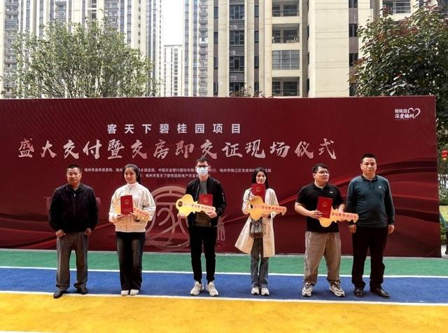 11月30日上午,梅州客天下碧桂园举办了“交房即交证”活动,梅州市自然资源局、梅州市住建局、梅州市梅江区住建局、中国农业银行梅州分行等单位见证了这一时刻。