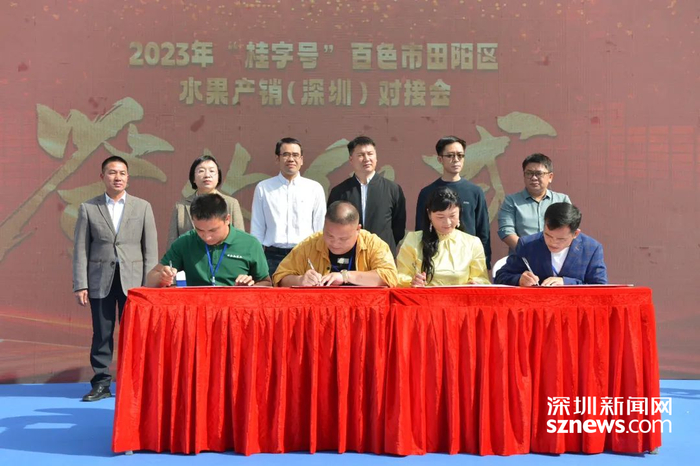 签约仪式。启动仪式上,田阳六联四通坊果蔬专业合作社与深圳市太薪洲文化发展有限公司,广西深百情农林科技有限公司与绿然农业集团,广西田阳恒久新农业科技有限公司与广东省南方优品运营有限公司,广西田灿灿农业发展有限公司与深圳市绿家农牧产品贸易有限公司进行现场签约,意向签约金额2327万元。