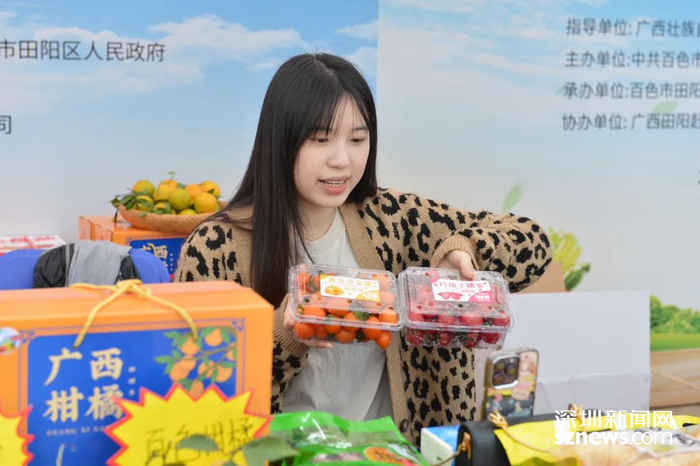 深圳新闻网 2023年12月6日讯(记者 林秋颖)为进一步加强产销对接,深化粤桂协作,12月4日,2023年“桂字号”百色市田阳区水果产销(深圳)对接会在深圳市光明区正式启动。来自田阳区832平台企业、获得“圳品”认证、获得“扶贫”产品认证等15家企业参加集中展销,圣女果、百香果、柚子等鲜果,粮油、果干、预制菜、芒果酒等百余种“桂字号”农特产品惊艳亮相,吸引了众多市民前来驻足品尝选购。