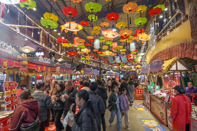 在景区另一个必打卡点——古龙墟市,腊肉、腊肠、腊鸭飘香诱人;番薯、番茄、茄子、菜心等各种当季产品色彩缤纷;玉米、葫芦、辣椒、灯笼和福字等组成的年味打卡墙将氛围感拉满。