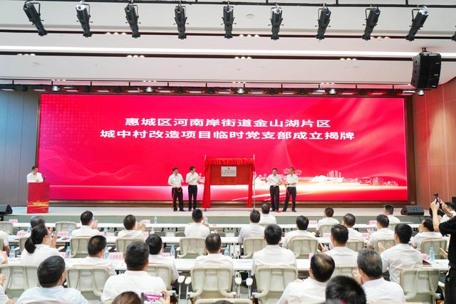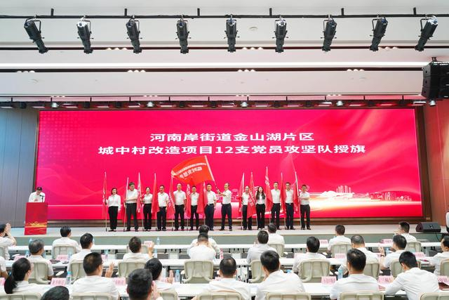 “火车跑得快,全靠车头带”。活动现场,惠城区还举行了金山湖片区城中村改造项目临时党支部揭牌仪式,并为临时党支部书记秦海刚授旗,秦海刚则为12支党员攻坚队授旗。据了解,河南岸街道党员攻坚队将深入项目一线,积极协调解决群众关切的问题,为项目的顺利推进提供坚实的组织保障。