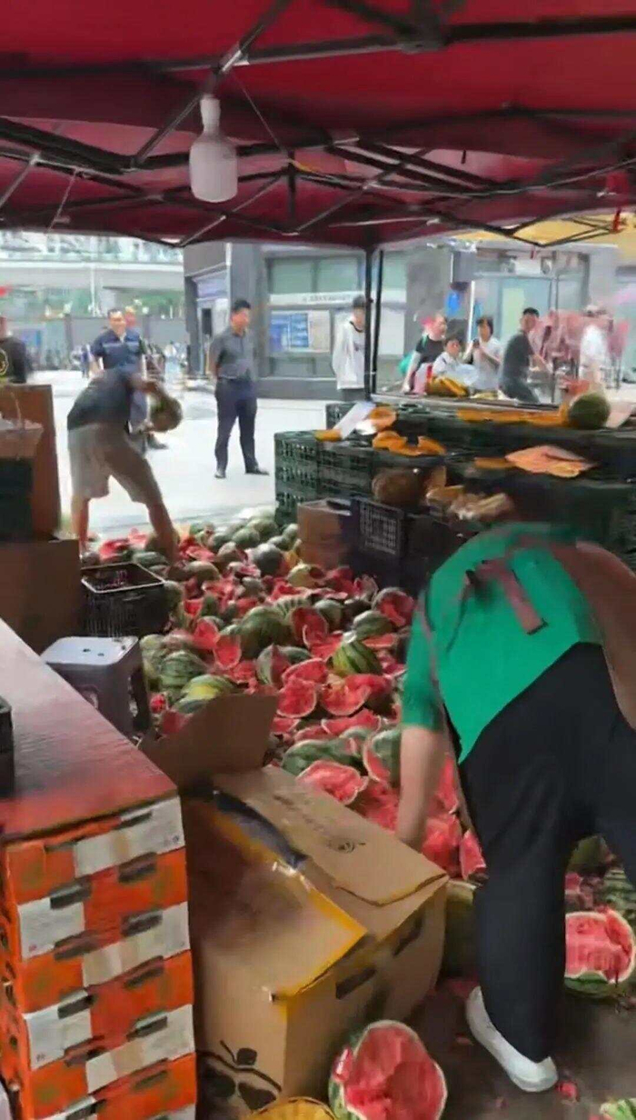 6月5日,多名网友发布视频称,重庆两家水果店起了争执,在街头上演砸西瓜大战。