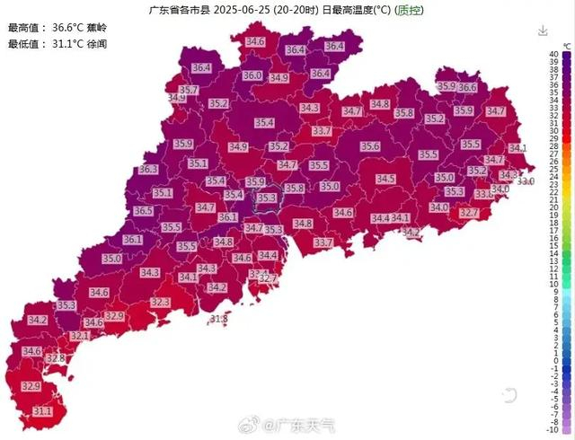 广东虽然没有京津冀“铁板烧”般的高温,但“鸡腿”也已被烤到发紫,25日蕉岭以36.6℃的成绩夺广东高温榜冠军。