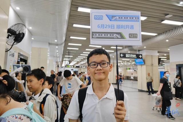 6月29日11时许,在10号线杨箕东站,杨箕村组织了舞龙舞狮队伍,为10号线开通助兴。在1号线西塱站换乘10号线入口,则聚集了数十位市民街坊等待开通。黎阿姨特意举着“10号线、12号线顺利开通”的牌子,拍照留念。她兴奋地说:“我住在海珠,特意来到西塱站坐10号线,想乘坐首班车体验,以后去五羊邨、杨箕更方便了。”