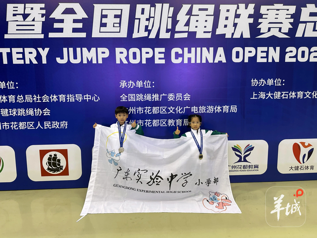 来自广东实验中学小学部二年级的学生梁嘉桐、黄栩笙在U9混合组30秒1带1项目中获得亚军。