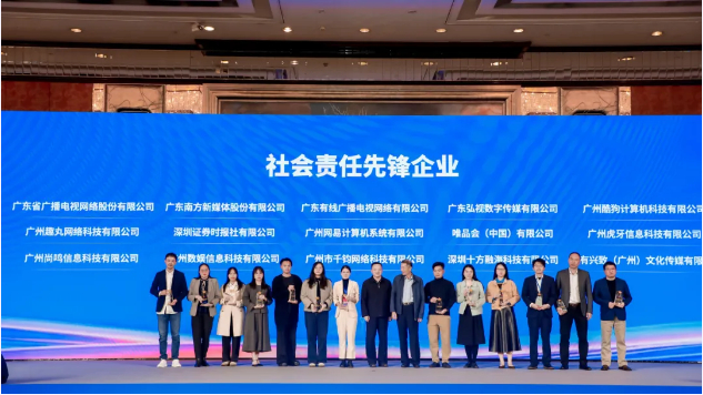 与行业共成长,与时代同奋进。2025年是广东省网络视听新媒体协会成立十周年。会上回顾了协会十年发展轨迹,总结广东网络视听蓬勃发展成果,举行了“十载相伴·携手同行”荣誉发布,对长期关心支持协会发展、积极参与行业建设的优秀单位和个人,分别授予榜样企业、杰出贡献人物以及社会责任先锋企业称号予以褒扬,树立行业标杆,发挥示范引领作用,进一步推动网络视听产业高质量发展。