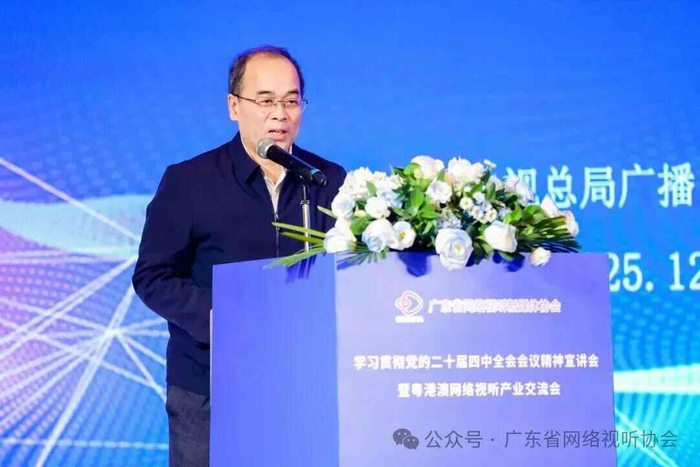 12月25日下午,学习贯彻党的二十届四中全会精神宣讲会暨粤港澳网络视听产业交流会在广州举行。会议由广东省网络视听新媒体协会主办,由中国广播电视香港记者站、中国广播电视澳门记者站、中国电子商会粤港澳大湾区合作办公室、澳门网络视听协会、香港粤港澳大湾区动漫文化协会、澳门直播协会、广东省广播电视网络股份有限公司、广州尚鸣信息科技有限公司、广东南方新媒体股份有限公司、澳门影视产业发展促进会共同支持。活动以专题宣讲、总结表彰、大咖分享、启航发布等方式,聚焦科技创新、内容创作、跨区域协作、产教融合及文化出海等搭建交流桥梁,推动网络视听行业紧扣国家战略,以优质内容和技术创新把握发展先机。