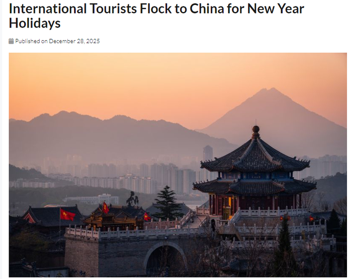 美国《旅行与旅游世界》网站12月28日发表题为《国际游客涌入中国欢度新年假期》的文章。文章说,2026年元旦假期将至,中国旅游市场迎来大批国际游客。随着中国旅游业步入快车道,外国游客数量大幅增加,2026年元旦假期期间入境机票订单量已超过32万张。目前的趋势表明,旅游业的增长可能带火更多中国的旅游目的地,还将把外国游客吸引到中国的不同地区。中国的对外开放战略推动了旅游业的增长。