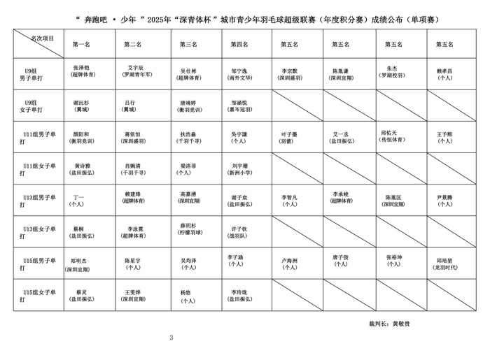 深圳新闻网2025年12月29日讯(记者陈琳君)12月28日,“奔跑吧少年”2025年“深青体杯”城市青少年羽毛球超级联赛年度积分赛在深圳盐田区热力开赛。来自粤港澳大湾区近50家单位、约200名青少年羽毛球爱好者齐聚赛场,挥拍角逐年度积分排名,用拼搏与汗水诠释昂扬向上的体育精神。