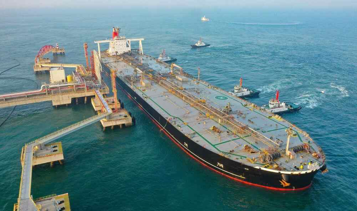 12月18日,一艘装载着石化原辅料的外籍船舶泊入位于海南省儋州市的国投洋浦油储码头30万吨级原油泊位(无人机照片)。自2025年12月18日起,海南自由贸易港正式启动全岛封关。新华社记者郭程摄