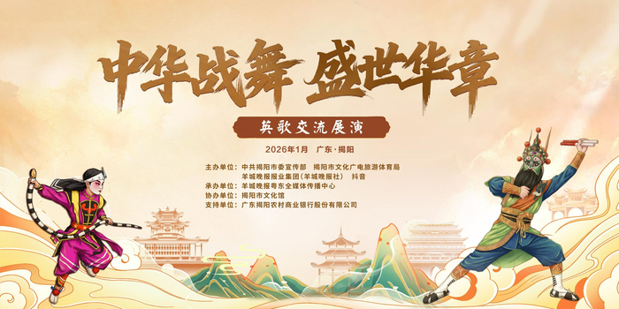 一场跨越地域与流派、连接传统与现代的英歌大汇演即将开启。元旦之夜,揭阳楼前,铿锵鼓点将与千年文脉共振,激昂槌声将擂响新年奋进的序曲。让我们共同期待,在“中华战舞”的磅礴气势中,感受英歌文化的精气神,见证文化赋能乡村、潮涌世界同心的崭新篇章。