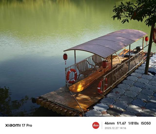 218最美公路长亭驿站旁,一艘竹筏船静候游客