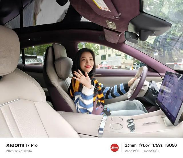 羊城晚报记者前往218最美公路前,在小米YU7内合影