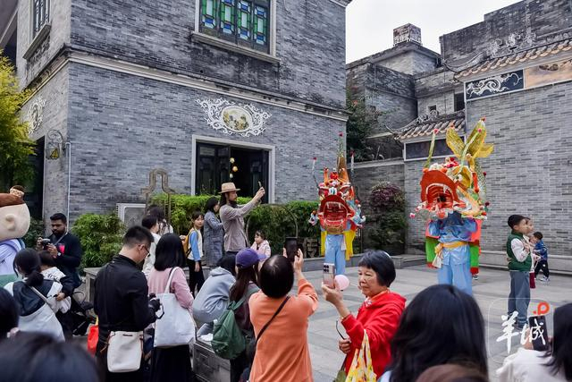 节日期间,每日11:00与15:00,沙湾鳌鱼与IP形象“沙沙湾湾”从南门出发,沿大巷涌路、安宁广场、车陂街巡游至留耕堂,灵动表演与街巷古韵相映成趣。