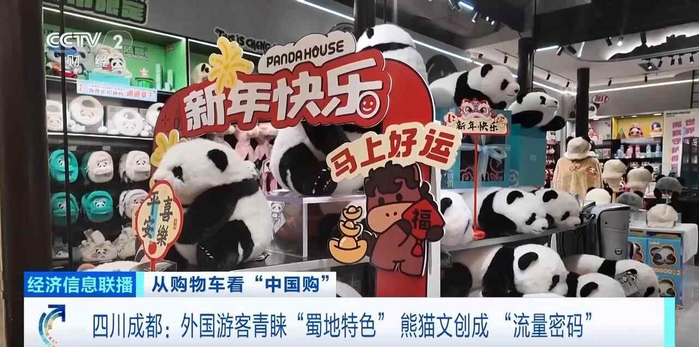 在成都宽窄巷子的“熊猫屋”文创店,不少外国游客驻足挑选、消费打卡。店内超3000款熊猫主题文创产品,成为外国游客青睐的成都“新特产”。