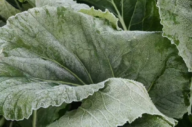 1月3日早晨,广州市增城区正果镇,菜地蔬菜出现霜冻。图/@广州天气