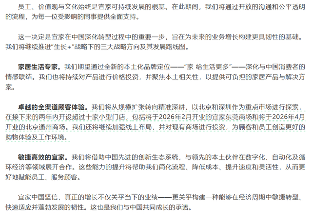 宜家中国表示,此次调整是公司在中国深化转型的重要一步,旨在为未来的业务增长构建更具韧性的基础。