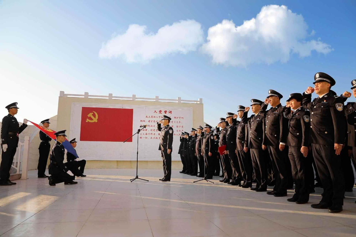 1月9日清晨,皇岗边检站民警警容严整、精神饱满,在旗楼前整齐列队,隆重举行升旗仪式。伴随着雄壮的义勇军进行曲,国旗冉冉升起,全体民警肃立致敬。随后,在领誓人的带领下,民警面向警旗庄严重温入警誓词。铿锵誓言,回荡人心。