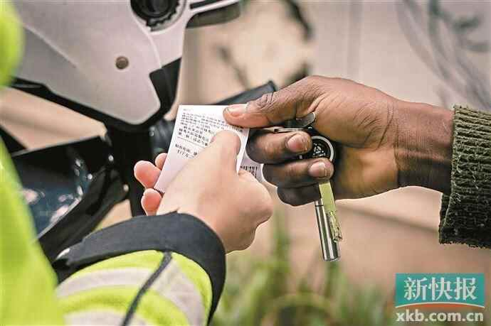 ■广州交警对违法车辆开罚单。广州平均三人有一辆电动自行车