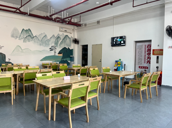 更具体的服务在日常中体现。“每天11:30开始送餐,要送12份,最远5分钟左右能送到。”中心社工表示,这些饭菜被送往行动不便的老人家中。“我们的餐标很低,一荤一素才8块钱,60岁以上的长者减免2块钱,特困户和低保户还能免费吃,长期卧床的老人我们也免费送餐上门。”中心内还设有康复理疗室、心理疏导室、书吧等功能区域,每周二、周三有书法课,每月15号提供免费理发服务,日均服务老人约300人次。