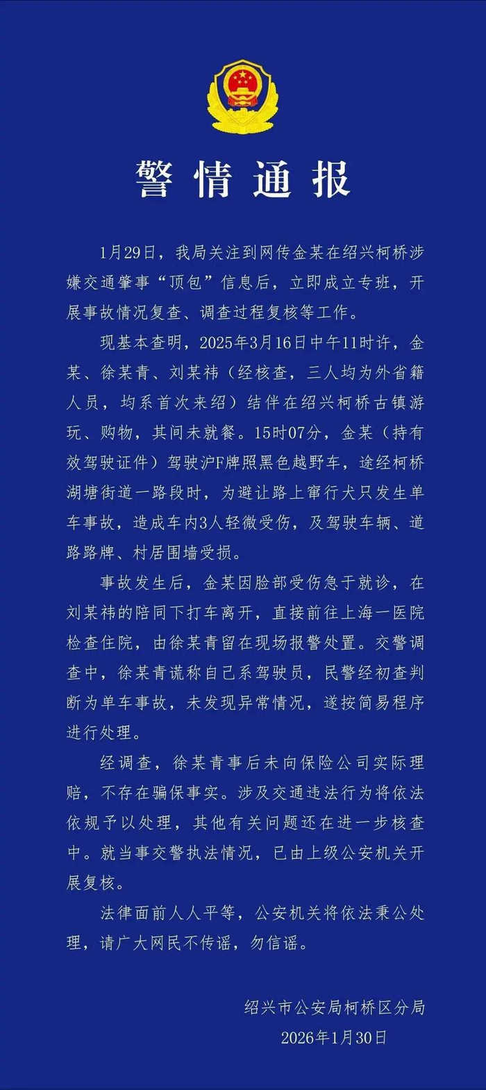1月30日,浙江省绍兴市公安局柯桥区分局发布警情通报。