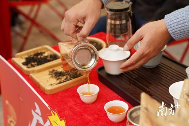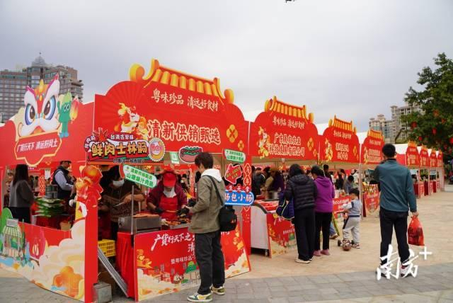凤城广场内张灯结彩,年味十足,活动现场俨然成为一场集“品、购、玩”于一体的清远风味嘉年华,人头攒动、热闹非凡,处处洋溢着新春的喜庆与消费的火热。线下展销区里,清远鸡、英德红茶、西牛麻竹笋、清远丝苗米等清远“五大百亿”农业龙头产品悉数亮相,新春好物琳琅满目,每个摊位前都围满了前来咨询、试吃、选购的市民。大家手持购物袋,挑选着心仪的年货,试吃清远鸡的市民对其鲜嫩口感连连称赞,英德红茶区更是座无虚席,沉浸式的体验让市民在家门口就能一站式置办地道粤味年货。