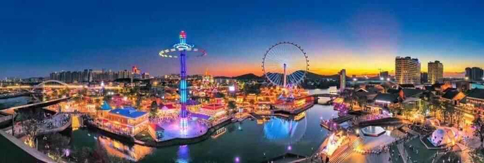 傍晚的顺德欢乐海岸PLUS,同样是美食聚集地,这里主题公园灯光璀璨,星光邮局可寄出新年祝福,梦幻飘雪与闪光市集交织,岭南风情与潮流元素碰撞,为这场元旦之旅画上浪漫句号。