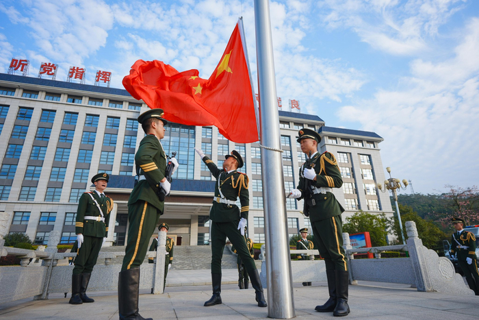 忆往昔,奋勇开拓;展未来,重任在肩。庄严肃穆的升旗仪式,凝聚了军心、提振了士气,增强了支队官兵荣誉感、责任感和使命感。全体官兵表示:一定要坚定信心、勠力同心、同向同行,以新的面貌、新的姿态、新的标准履行新使命,为推动新年度支队全面建设再上新台阶贡献全部力量。