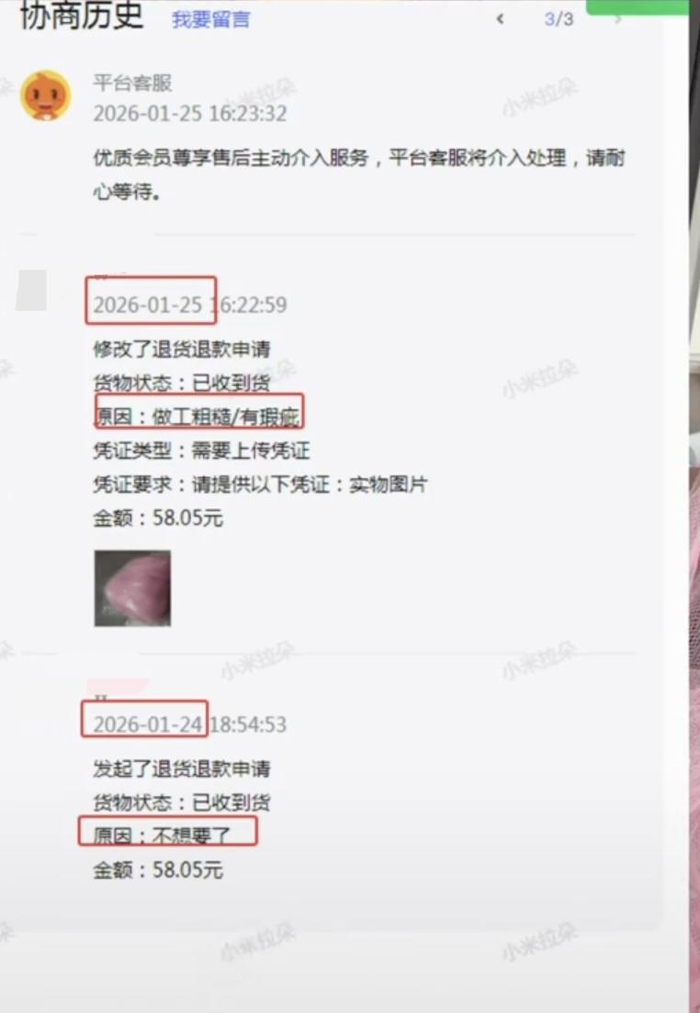 王女士表示,自己已将详细的拆包视频提交给平台,“我们拒绝垫付极速退款,正在等待买家回应中,平台方目前可能还没有处理到。我希望平台给我一个公正的处理。”