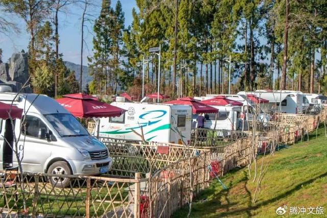 腾越街道G219车友汇聚点(腾冲站)房车营地,离城11公里,内设房车(旅居车)停车位40个,具备露营大棚,提供水、电、卫生间,公共浴室,洗衣机,冰箱及部分厨房用具。