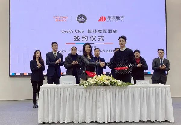 复星旅文旗下Cook’sClub全球首家全套房酒店落户桂林。复星旅游文化集团旗下新世代潮流度假品牌Cook’s Club与桂林华鼎房地产开发有限公司正式签署其在国内的第一个合作项目 -- Cook’s Club桂林度假酒店,落址世界自然遗产之地桂林,位于尧山脚下的花卉大道,预计于2021年下半年开业。作为Cook’s Club全球首家全套房酒店,其包括约120间套房,含10栋别墅,皆自带花园或景观阳台,可眺望酒店内一方静谧湖泊或近在咫尺的尧山仙境。