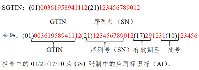 GTIN与序列号按GS1码的编码规则组合后,成为SGTIN( Serialized Global Trade Item Number),是可追溯的最小长度字段,成为药品“唯一身份证”。
