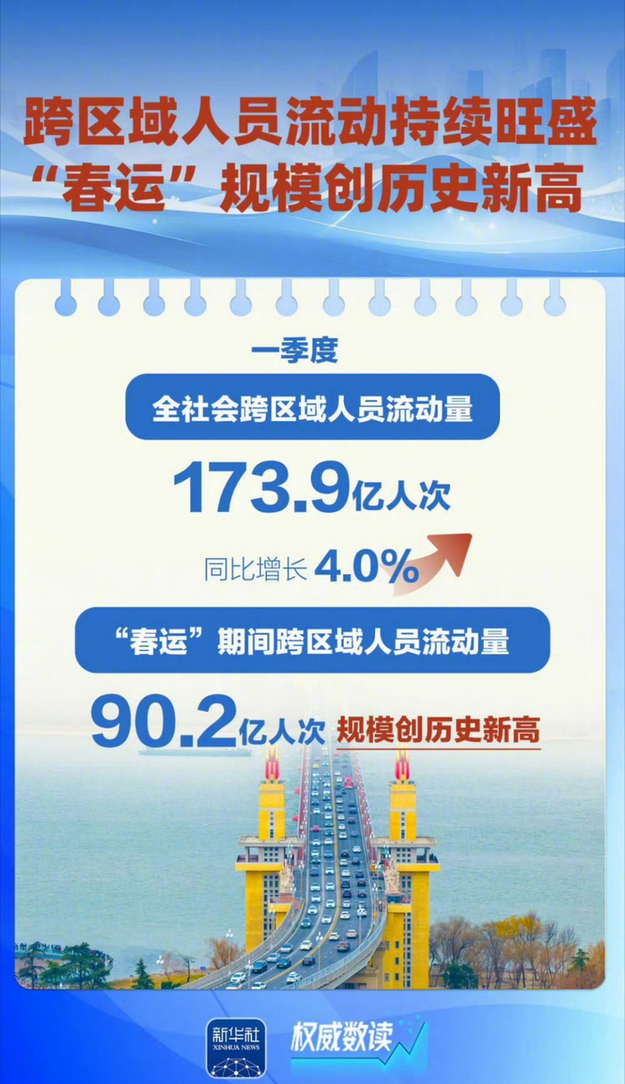 交通是国民经济发展的“大动脉”,更是民生保障的“大支撑”。今年一季度,我国全社会跨区域人员流动持续旺盛,跨度业务再创新高!