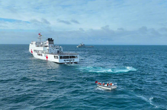 近日,南海海域,南部战区海军大队组织舰艇编队进行海上搜救训练!