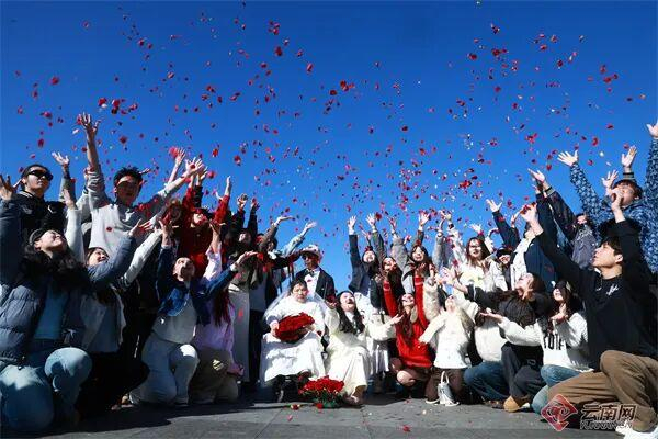 路人纷纷“抢镜”,送来祝福