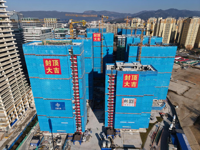 1月1日,伴随着最后一方混凝土浇筑完成,由昆明惠居保障房建设管理有限公司投资建设、中交二航局承建的昆明盘龙山水新城2号地块保障房项目主体结构全面封顶。