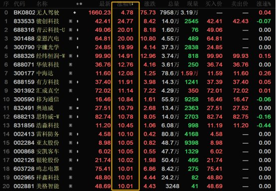 午后,无人驾驶板块全线大涨,个股掀起涨停潮了,多达23家公司涨停,赚钱效应满满的!
