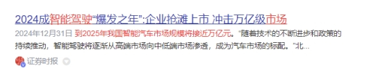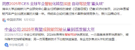 随着AI大模型和大数据技术的突破,智能座舱和自动驾驶技术的应用正在深刻改变着汽车行业的格局。机构表示,全球车企智能化转型加速 自动驾驶是“重头戏”。中金公司也表示:2025年有望成智能驾驶从量到质发展大年。