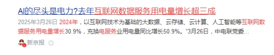 2024年互联网数据服务用电量增长超三成,国家能源局数据显示,今年1至2月全国互联网和相关服务用电量日均同比增长25.2%。